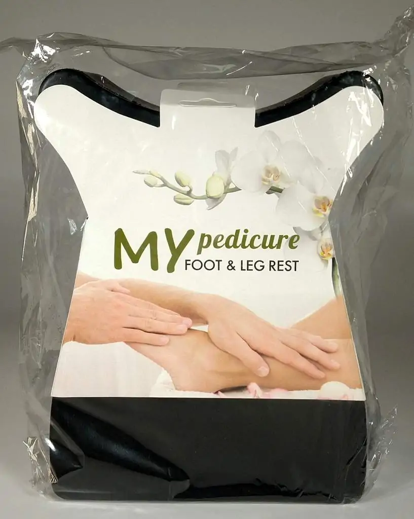 Pedicure foot and leg rest reducing back strain on the technician and keeps the client comfortable during services.